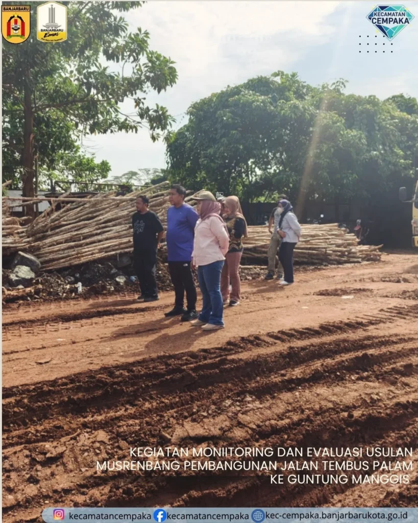 Camat Cempaka bersama Lurah Palam, Kasi Ekobang Kecamatan Cempaka, dan Kasi Ekobang Kelurahan Palam melakukan Kegiatan monitoring & evaluasi lapangan terkait usulan Musrenbang pembangunan jalan tembus Palam menuju Guntung Manggis.